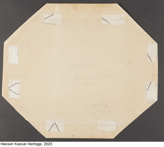 auf altem Karton (Rückseite Bilderrahmen?): (mit Graphit); auf altem Passepartoutkarton: Photographie v. B. Erdmann in Mainz (Buchdruck); verso: "Leihgabe Geschichtsverein" (mit Bleistift); verso: "1937/159" (mit Bleistift); Stempel: rund, auf separatem Karton: VHG;