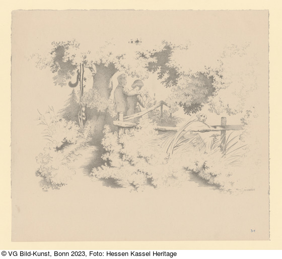 in der Platte (Druckgraphik): unten rechts: K.HANUSCH (Lithographie); Handschrift: unten rechts: 31 (mit Kugelschreiber in Blau);