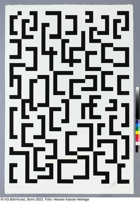 Siebdruck, aus: Übersichtsmappe mit 10 Serigraphien (Entwurf), verlegt 1987 von der Edition Hoffmann im Beisein von Leon Polk Smith