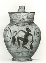 Kanne (Olpe) mit Komast (Pygmäe?) |