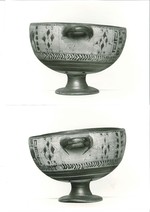 Die tiefe Schale auf Stielfuß ist in dieser Fundgruppe selten. Die Ornamentierung und die Wiedergabe der Tiere in Silhouette, kombiniert mit der Umrißzeichnung der Köpfe, sind charakteristisch für die karische Keramik.