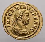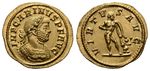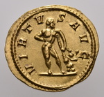 Diese schöne Goldprägung belegt das Fortleben des unter Gallienus (Mü 643) und Postumus (Mü 724) nach älteren Vorgaben (Mü 715 [Gordianus III.]) entwickelten Hercules-Bildes auch auf den Münzen des Probus. Der Stempelschneider betont die plastischen Formen des Körpers, vor allem im Oberkörper. Hercules' Gesicht und das Löwenfell sind grob aber klar ausgeformt.