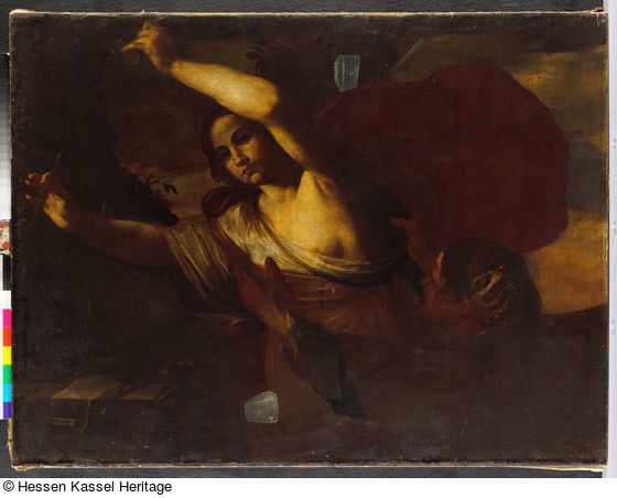 Eine junge Frau mit Federkiel und Zeichenstift in den Händen strebt von einer alten Frau fort, die sie zurückhalten will. * Nach Erich Schleier, Berlin, von einem mit Antonio de Bellis (gest. 1656) und Giacomo Farelli (1624-1706) verwandten neapolitanischen Meister (Brief 3.4.1991). Pierre Rosenberg hält es dagegen für ein Werk aus dem Umkreis des Valentin de Boulogne (Rosenberg/Mandrella 2005,, Nr. 1104).