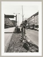 Anbinden der Bäume der Pflanzung in der Rudolf-Schwander-Straße, Fotodokumentation "7000 Eichen", documenta 7