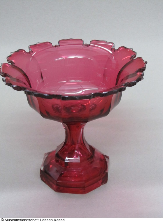 Zuckerschale in Kelchform für die Tischgarnitur aus Rosalinglas |