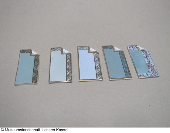 Steingut, Umdruckdekor, koloriert und vergoldet. |