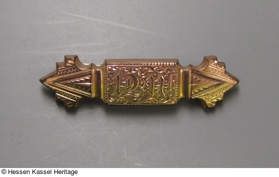 Kupfervergoldete Brosche mit graviertem Monogramm