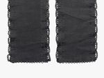 Kinnbänder: schwarzer Seidenrips mit Pikots, moiriert, in 16 cm Höhe von oben angesetzt