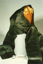 Futter: naturfarbenes Leinen, leinenbindig, mit Einlage und Oberstoff handgesteppt