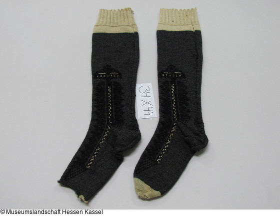 1 Paar Frauenkniestrümpfe (Marburger Tracht), zur stolzen schwarzen Tracht (Übergangskleidung von der harten Trauer zur farbigen Tracht) (alte Tracht 40) |