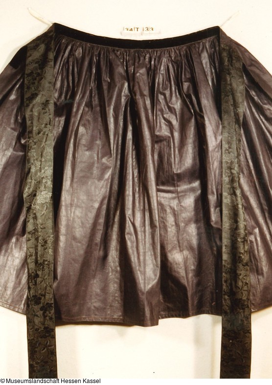 Material: Schürze: Baumwolle, geglänzt, Bindebänder: Seide, floral gemustert;
