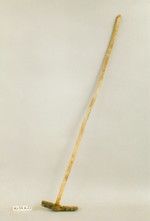 Hammerkopf mit quadratischer Bahn und liegender, breiter Finne. Runde, nach außen gewölbtes Auge. Entrindeter Stecken als Stiel.