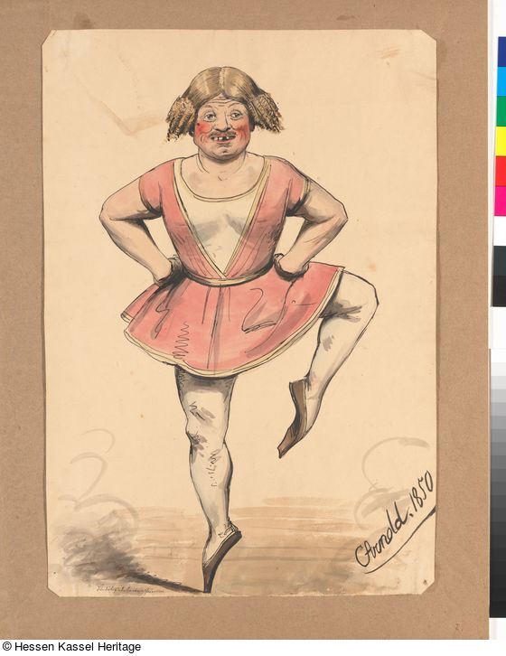 | Bezeichnung: | Karikatur der Kasseler Bürger: Bundestagssekretär Günther im Ballettkleid auf Zehenspitzen |