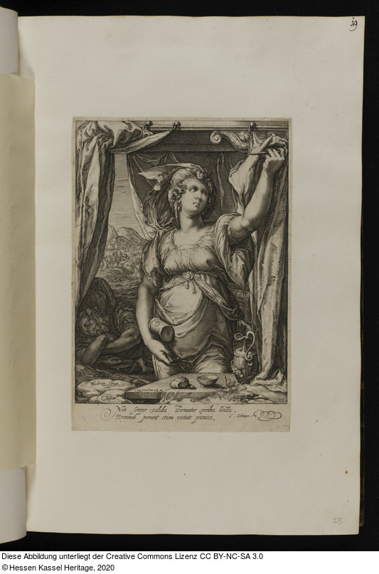 Hist. Inhaltsverzeichnis: 19 | Jael qui a tué Sissera avec un clou (Jud. IV. 21.) / il y a 2 vers: Non semper validis – virtute po- / tentes | ___,,___ [J. Sanredam sc.] [nachträglicher Zusatz links mit Bleistift von anderer Hand: 25]