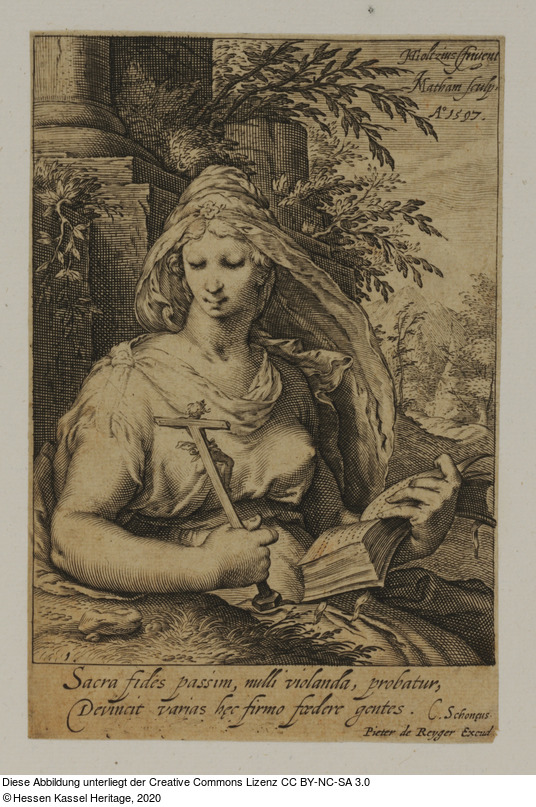 in der Platte: unter der Darstellung: Sacra fides passim, nulli violanda, probatur, / Devincit varias nec firmo foedere gentes. C. Schoneus. / Pieter de Reyger Excud.;