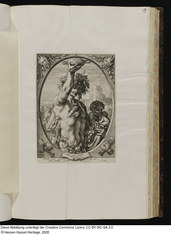 in der Platte: unter der Darstellung: 1 Oblecto dulci maerentia corda lyaeo, / Osor tristiciae, laeticiaeque dator. C. Schonaeus;