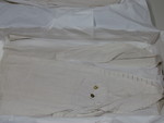 Weißer Kittel mit Metallknöpfen und Stickereiverzierung.