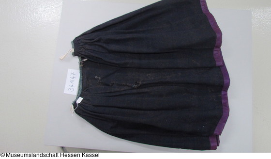 Dunkelblauer Rock, violettes Saumband, eingestickte Nr. "3".