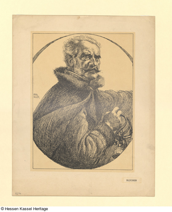 Bezeichnung: unter der Darstellung rechts: Blücher (Reproduktion); Bezeichnung: mittig, links außen: Karl Bauer (Reproduktion); Signatur: BTG;