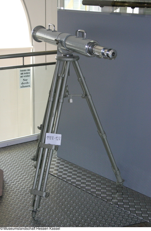 134 x 12 x 12 cm (Objektmaß) 12 cm (Durchmesser) 5,7 kg (Gewicht) Länge wie ausgestellt 125 cm (Länge) Fernrohr plus Flügelmuttern 19 cm (Breite) mitsamt hier verwendetem Stativ 124 cm (Höhe)