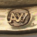 BZ, MZ und Tremolierstrich befinden sich auf der Unterseite des Fußes sowie BZ und MZ auf der Ober- und der zugehörigen Temolierstrich auf der Unterseite des Deckelrandes.: (BZ, MZ, Tremolierstrich);