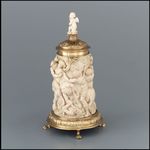 Nach der mittelalterlichen Blüte künstlerischer Elfenbeinschnitzerei erlebte diese zu Beginn des 17. Jhs. eine Wiederbelebung und löste die zwischenzeitlich bevorzugten Kleinbronzen der Renaissance ab. Die zylindrische Form der in großen Mengen eingeführten Elefantenzähne eignete sich besonders für Deckelhumpen.