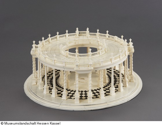 Das "Inventarium über Kunstsachen aus Bernstein, Elfenbein [...]" aus dem späten 18. Jahrhundert vermerkt am Ende eines Eintrags über vier Elfenbeindrechselarbeiten: "Nota. Die 4 Stück von Nr. 250-253 sind von dem Herren Landgrafen Wilhelm IX. zu Hessen als Erbprinzen zu Hanau gefertigt". Die Kolonnade, aufgeführt als Nr. 250, gilt seitdem als eigenhändiges Werk Wilhelms IX. von Hessen-Kassel, wenngleich vermutet werden darf, dass ihm ein erfahrener Künstler zur Seite stand.