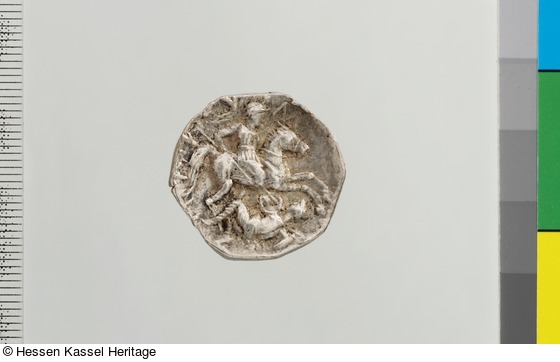 Vs: Kopf des Apollon; Rs: Reiter und ein am Boden liegender Feind