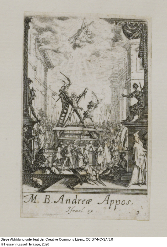 Sekundäre Ikonographie: 73F2535 die Kreuzigung des Andreas: er wird entkleidet und an das Kreuz gebunden Primäre Ikonographie: 31A27631 auf Wolken sitzen oder stehen Sekundäre Ikonographie: 45B der Soldat; Soldatenleben |