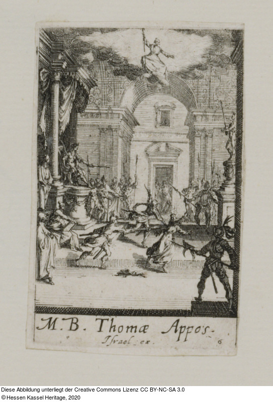 Sekundäre Ikonographie: 73F2955 der Tod des Thomas: vier Soldaten führen ihn aus der Stadt hinaus und töten ihn mit ihren Lanzen Primäre Ikonographie: 31A27631 auf Wolken sitzen oder stehen Sekundäre Ikonographie: 45B der Soldat; Soldatenleben |