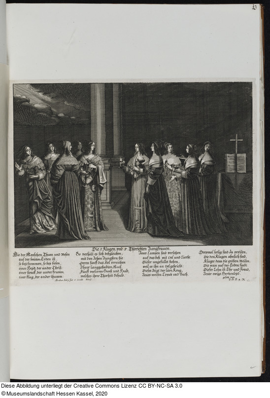 Hist. Inhaltsverzeichnis: 13. | Die 5. klugen und 5 thörichten Jungfrauen; unten 24. Verse: Wie der / Menschen Thuen und Wesen – Jener ewigs Hertzenleÿd | Abrah. Aubrÿ