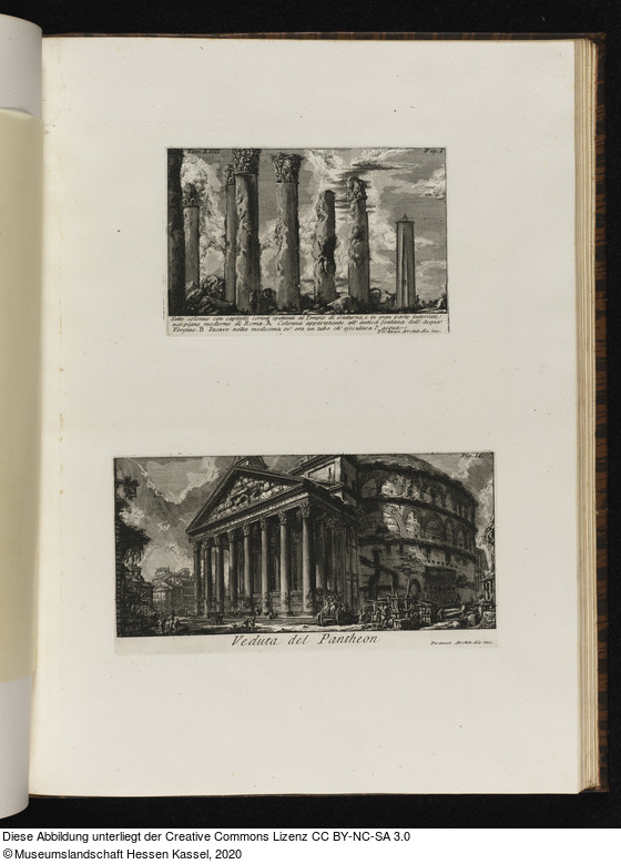 Werktitel: Seite mit zwei Darstellungen: Sieben Säulen mit korintischen Kapitellen und eine Ansicht des Pantheon