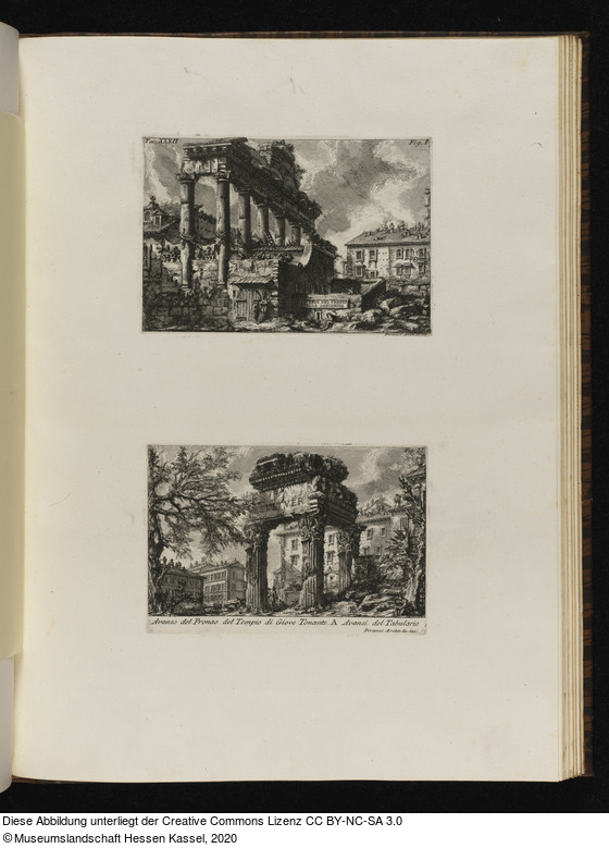 Seite mit zwei Darstellungen: Überreste des Concordia-Tempels und der Vorhalle des Jupiter-Tonans-Tempels |