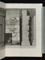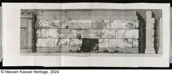 Beschriftungen: in der Platte: Tom. II. V; C PO[...]CIO L F ... BLICE DATVS EST; Si dimostrano più in grande ... Opera mia di Archit.ra; Piranesi Archit. dis. et inc.;