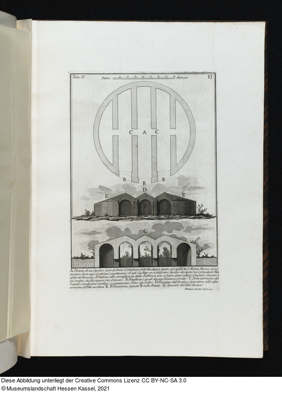 Beschriftungen: in der Platte: Tom. II. VI; A Pianta di un Sepolcro ... Spaccato del detto Avanzo.; Piranesi Archit. dis. et inc.;