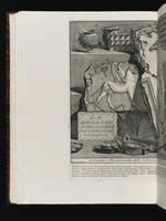 Kommentar: Piranesi hat das Konzept entworfen und radiert, Barbault hat die Figuren ergänzt. Die Inschrift wurde von einer separaten Platte unter die Darstellung gedruckt. Am linken Plattenrand, links unten und rechts unten auf der Buchseite schwarze Farbspuren.
