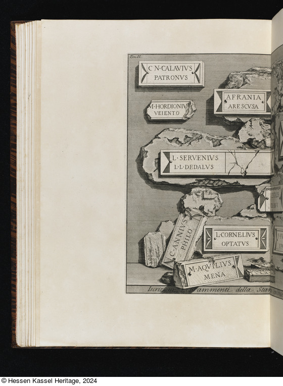 1. SM-GS 6.2.876/2, [fol. 1]: Titelblatt Band II: Die römischen Altertümer von Giambattista Piranesi, venezianischer Architekt, zweiter Band über die Ruinen von Grabdenkmälern in Rom und der Umgebung