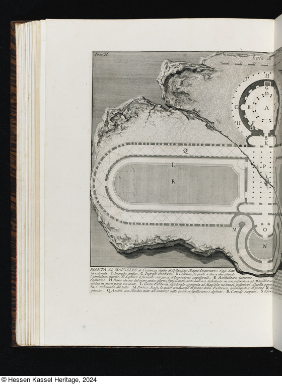 in der Platte: Tom. II. XXI; PIANTA del MAUSOLEO di Costanza ... dal piano antico della Strada T.; Piranesi Archit. dis. ed inc.;