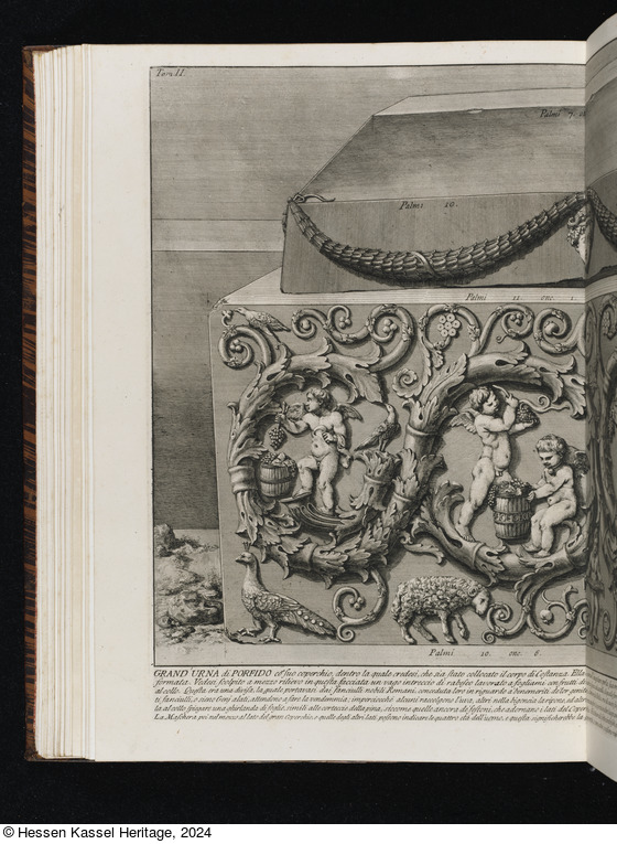 Beschriftungen: in der Platte: Tom. II. XXIV; GRAND 'URNA di PORFIDO ... la testa di Bacco giovane.; Piranesi Archit. dis. ed inc.;