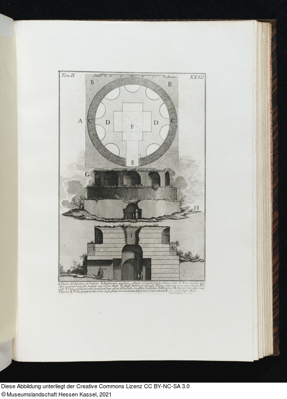 Beschriftungen: in der Platte: Tom. II. XXVII; A Pianta del Sepolcro ... che cerchia il gran Masso.; Piranesi Archit. dis. et inc.;