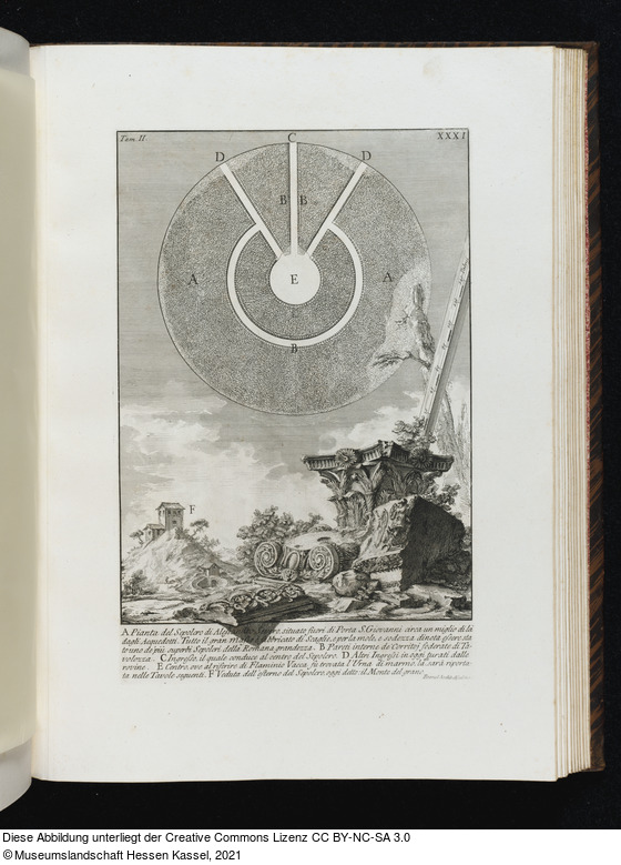 Beschriftungen: in der Platte: Tom. II. XXXI; A Pianta del Sepolcro di Alessandro Severo ... il Monte del grano; Piranesi Archit. dis. ed inc.;