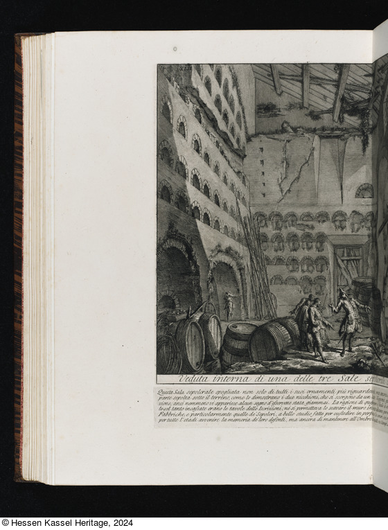 in der Platte: XLII Tom. II.; Veduta interna di una delle tre Sale sepolcrali credute della Famiglia di Augusto.; Piranesi Archit. dis. e inc; Questa Sala sepolcrale spogliata ... questa Sala peruso di Tinello.; Piranesi Architetto dis. ed inc.;