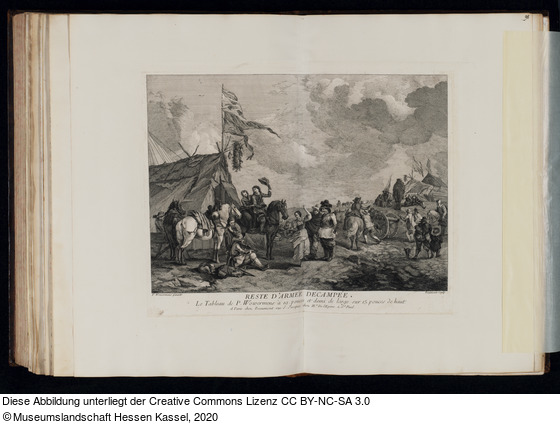 in der Platte: P. Wouwerman pinxit.; Beaumont Sculp.; RESTE D'ARMÉE DÉCAMPÉE.; LE Tableau de P. Wowermens à 19. pouces et demi de large sur 15. pouces de haut.; A Paris chez Beaumont rue S. Jacques chez M.r De l'Epine à S.t Paul.;