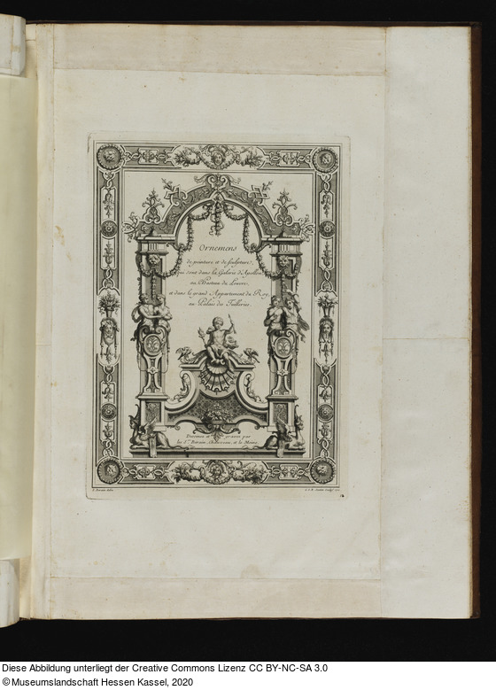 in der Platte: Ornemens de peinture ... au Palais des Tuilleries.; Dessinez et gravez par les S.rs Berain, Chauveau, et le Moine.; I. Berain delin.; G. I. B. Scotin sculps. 1710.; 1;