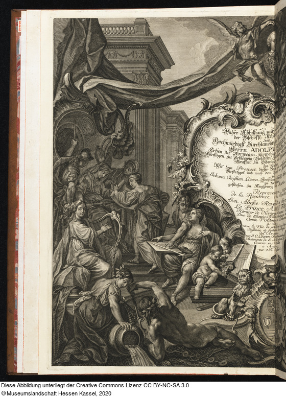 in der Platte: Wahre Abbildung und umständliche Beschreibung der Bischöffl Residenz und Gartens des Hochwürdigst durchlauchtigsten Fürsten und Herrn Herrn ADOLPH FRIDERICHS, Erben zu Norwegen, Erwehlten Bischoffen zu Lübeck Herzogen zu Schleswig=Holstein, Stormarn und d;