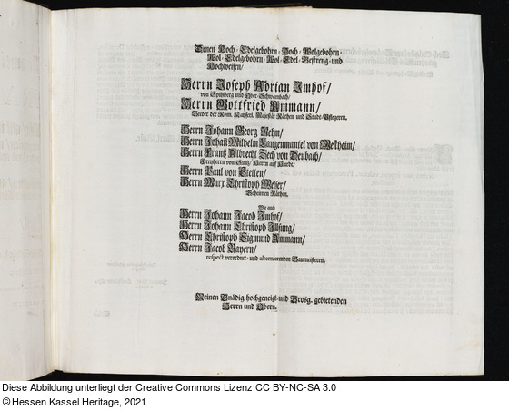 Beschriftungen: Typendruck: Denen Hoch=Edelgebohrn ... Herrn und Obern.;