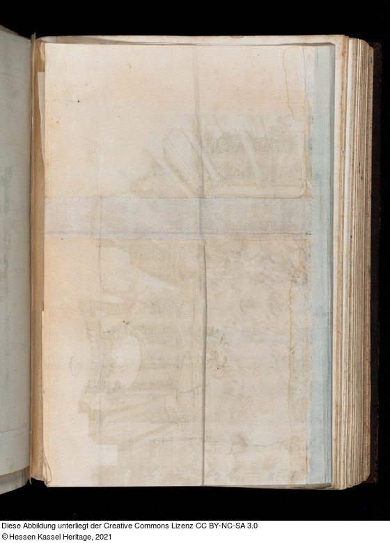 Die Darstellung wurde von zwei Platten auf zwei Bögen gedruckt und zusammen montiert. Mittig bräunliche Verfärbungen von eingedrungener Flüssigkeit. Einige Quetschfalten. |