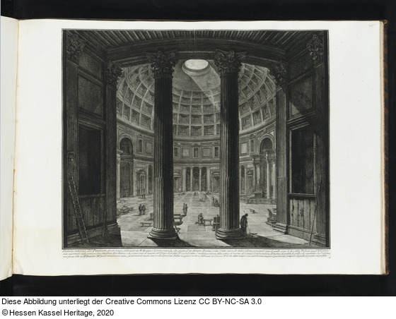 in der Platte: Caval. Piranesi F.; Veduta interna del Panteon. Questo tempio fabbricato da M. Agrippa è di forma rotonda, alto quanto il suo diamtero. ... Li otto altari minori sono antichi, come encora il pavimento composto di giallo, di granito, e di porfido.;