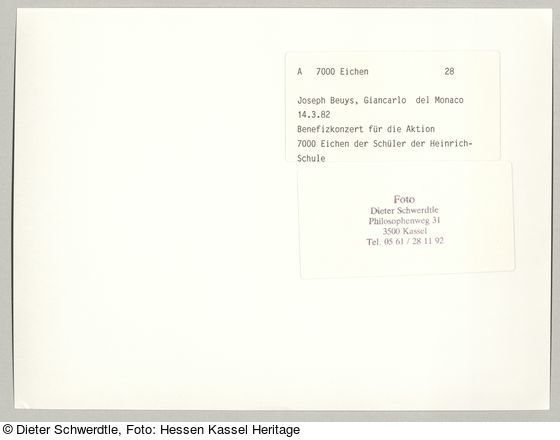 Joseph Beuys, Giancarlo del Monaco, Benefizkonzert der Schüler der Heinrich-Schütz-Schule für die Aktion 7000 Eichen, Fotodokumentation "7000 Eichen", documenta 7 |