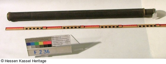 Das Fernrohr ist nicht mehr vollständig. F 234 und F 236 lassen sich nicht durch die Gewindeflansche miteinander verbinden. Da im Inventar von 1888 einerseits mehrere Nummern zusammengefasst wurden, andererseits zwischen den beiden genannten Stücken heute die Nummer F 235 fehlt, könnte ursprünglich noch ein dritter Tubus existiert haben. Dafür spricht auch die große Brennweite der Objektivlinse. Richtet man die beiden vorhandenen Fernrohrteile so aus, dass die Linsenkonfiguratuion korrekt funktioniert, ist der Abstand zwischen den beiden Flanschen 560 Millimeter, was recht gut dem damaligen Maß von zwei Kasseler Fuß entspricht. Möglicherweise war das Fernrohr für eine Expedition vorgesehen. Dafür sprechen die kompakten Transportmaße und die vergleichsweise robuste Ausführung der Messingteile.